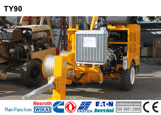 TY90 Hydraulic Puller | This machine allows for the tension stringing of twin-bundle conductor of 500mm2 and below in mountainous and hilly areas, of twin-bundle conductor of 630mm2 and below in flat lands, and of single conductor 720mm2 in various terrains; | |