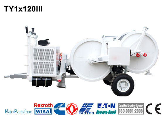 TY1X120III Hydraulic Tensioner | The machine allows for the tension stringing of triple-bundle conductor of 630mm2 and below in mountainous and hilly areas, of triple-bundle conductor of 720mm2 and below in flat lands, and of conductor 720mm2 in various terrains; | |