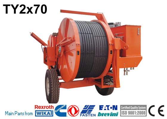 | TY2x70 Hydraulic Tensioner | The machine allows for the tension stringing of twin-bundle conductor of 630mm2 and below in mountainous and hilly areas, of twin-bundle conductor of 720mm2 and below in flat lands, and of conductor 720mm2 in various terrains; |