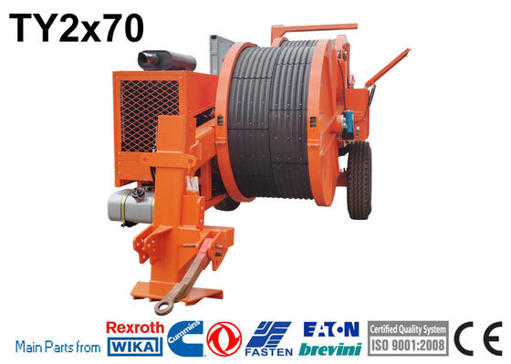 | TY2x70 Hydraulic Tensioner | The machine allows for the tension stringing of twin-bundle conductor of 630mm2 and below in mountainous and hilly areas, of twin-bundle conductor of 720mm2 and below in flat lands, and of conductor 720mm2 in various terrains; |